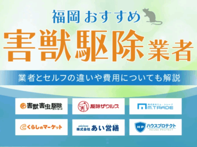 「害虫駆除を業者に頼みたい!」 「できるだけ費用は節約したい」 「福岡でおすすめの害獣駆除業者はどこ?」 困った害獣被害には専門業者への速やかな依頼が解決の糸口になります。 なお、害獣駆除の費用をでき ...