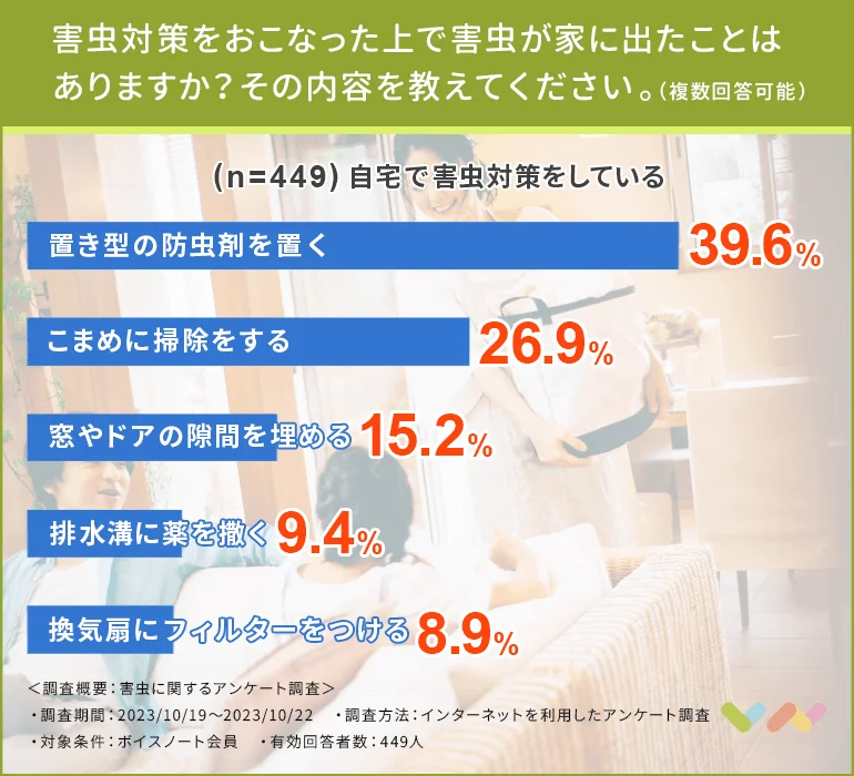 今回は害虫対策をしている449人にどんな対策を行っているのか内容を聞いてみました!