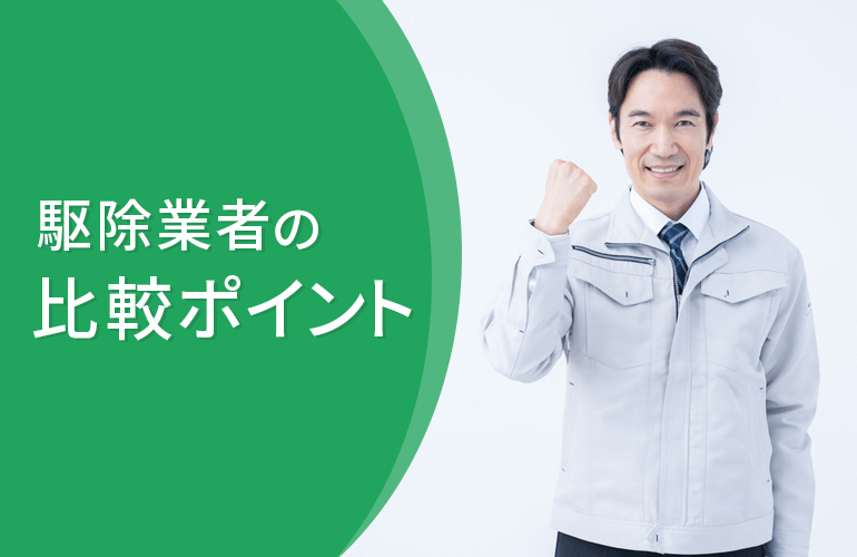 害虫「駆除」業者であっても、再発防止対策をおこなったり、保証を設けているところは多いので、あまりサービスに差はありません。