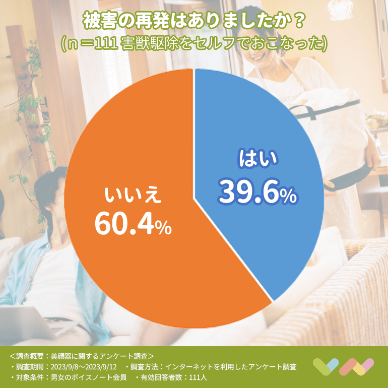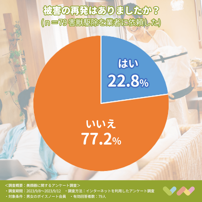 害虫は生き物なので、どんなに徹底した駆除でも100%大丈夫といい切ることができません。
