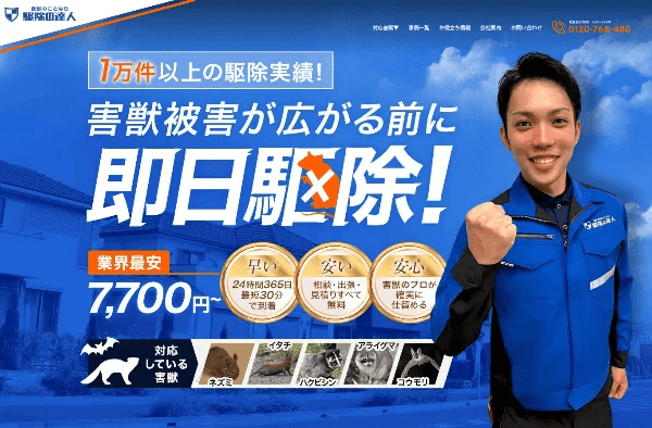 ネズミやイタチ、ハクビシンなどさまざまな害獣の駆除をおこなっており、最短即日に対応してもらえます。