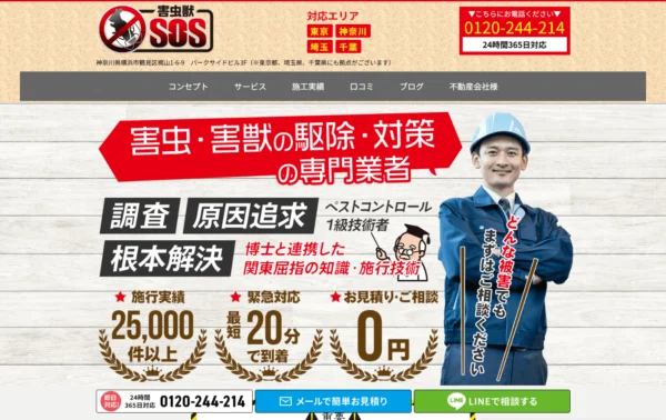 害虫駆除110番は、日本全国に対応している業者で、最短30分で無料診断ができます。