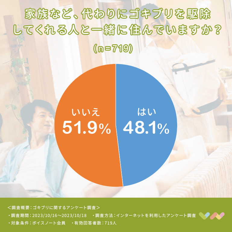 アンケートによると代わりに退治してくれる頼もしい同居人がいる人は全体の48.1%。