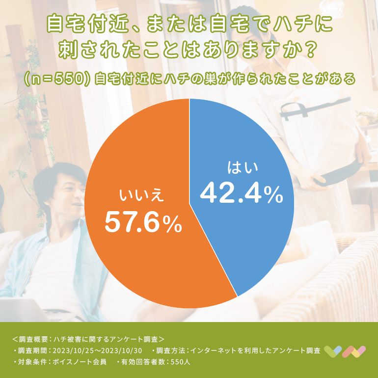 【42.4%が蜂に刺された経験あり!】ハチの巣が見つかったら早めに業者へ連絡しよう