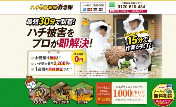ハチ110番は、利用者満足度の高さが魅力的です。