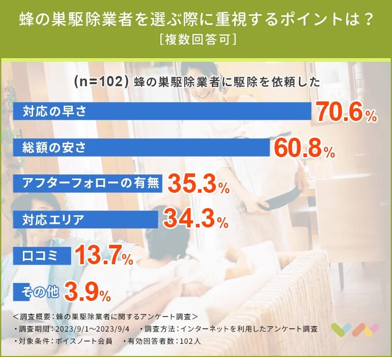 質問2:蜂の巣駆除業者を選ぶ際に重視するポイントはどこですか? [複数回答可]