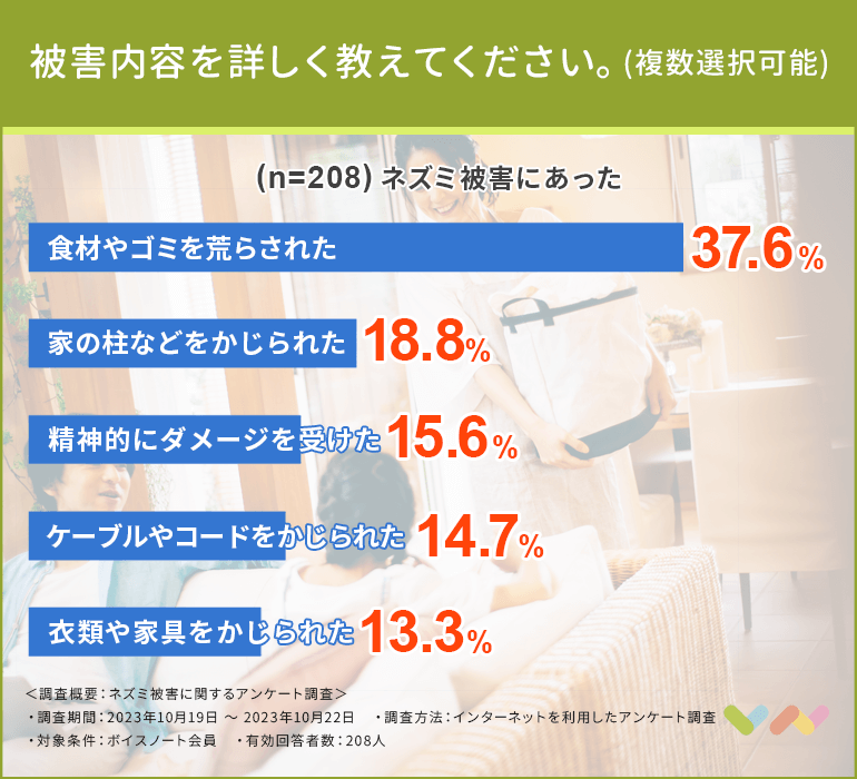 質問2:ネズミに侵入されて何か実害はありましたか?
