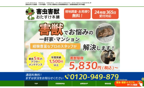 害獣駆除対策センターは、追加料金0円・最長10年保証付きの害虫・害獣駆除専門業者です。