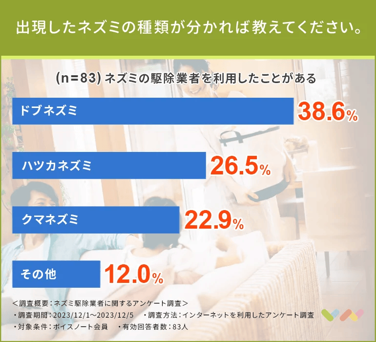 ネズミ駆除業者の実態を調査するため、ボイスノート会員にアンケートを実施。