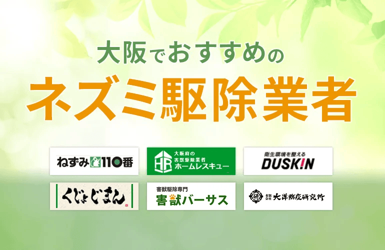 すぐにおすすめの駆除業者を知りたい方は、「大阪でおすすめのネズミ駆除業者9選!」からご覧ください。