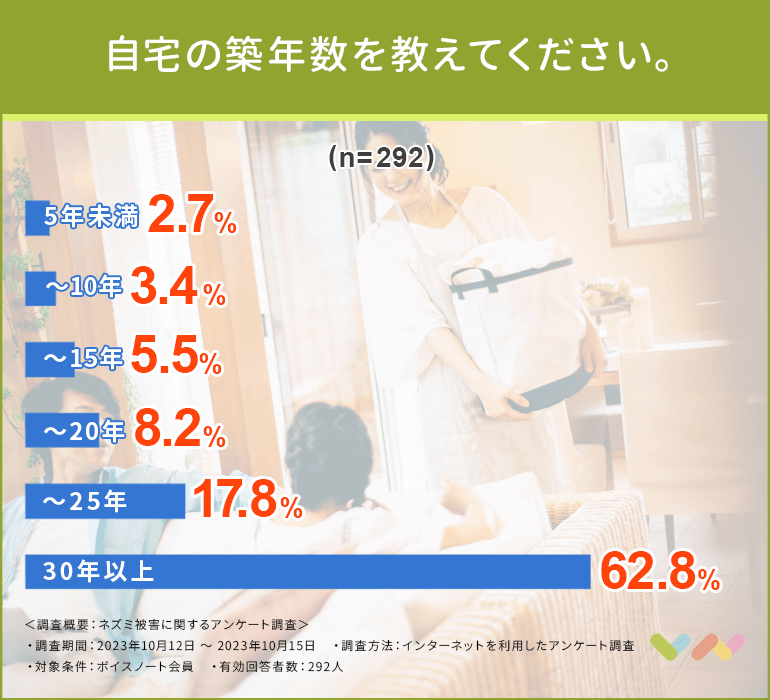 アンケートでは築年数30年以上の家がダントツででやすいと結果が出ています。