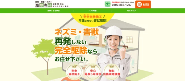 ねずみ110番は信頼できる東証上場企業であり、高い顧客満足度を獲得。